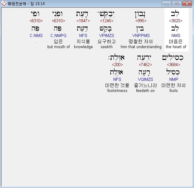 | 히브리어 잠언 14장 전체 원어 원문 성경 공부 주석 강해 설교 해설 해석 (0) | 2020.10.15 |