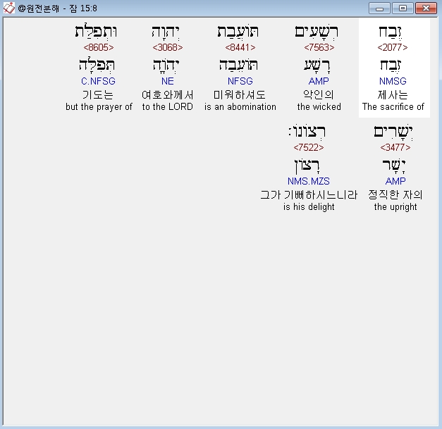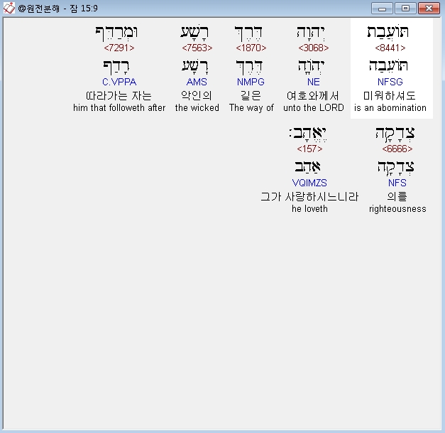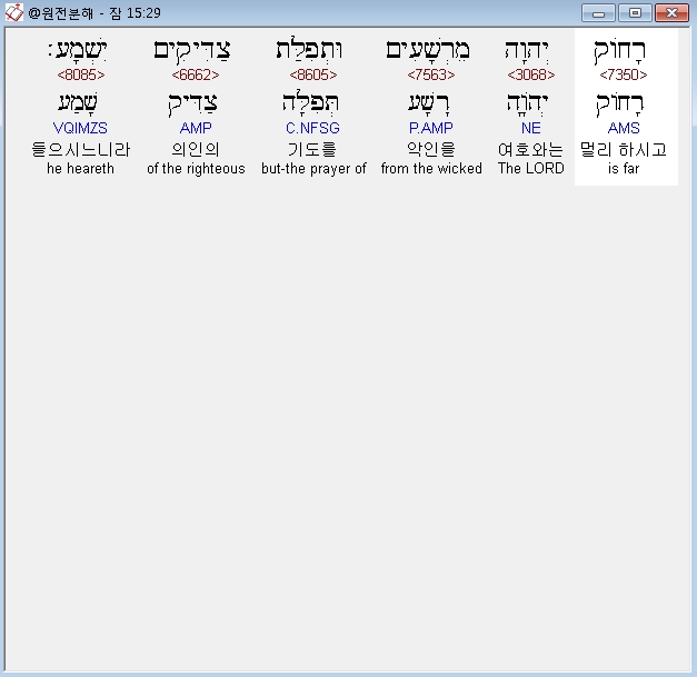 히브리어구약BHS,29 רָחֹוק יְהוָה מֵרְשָׁעִים וּתְפִלַּת צַדִּיקִים יִשְׁמָע׃