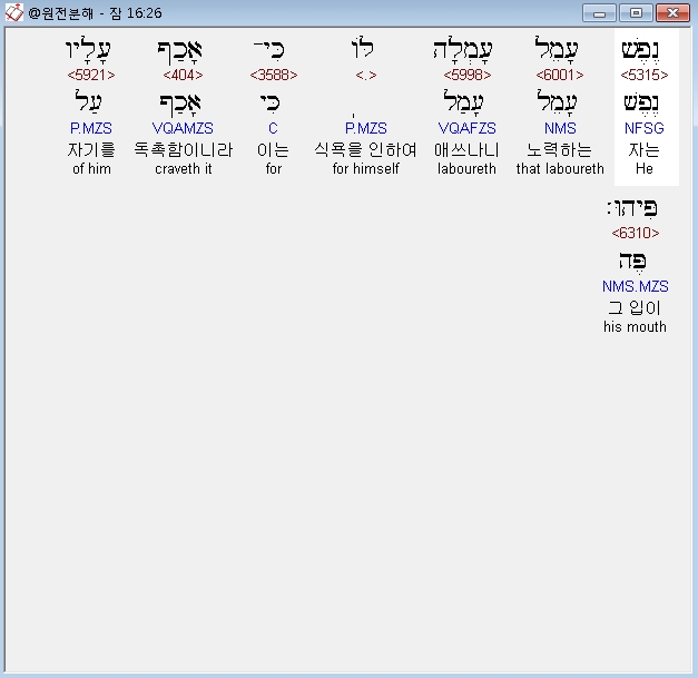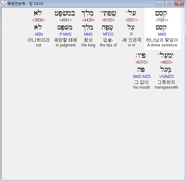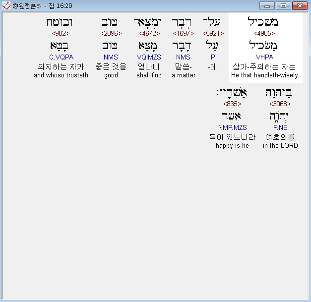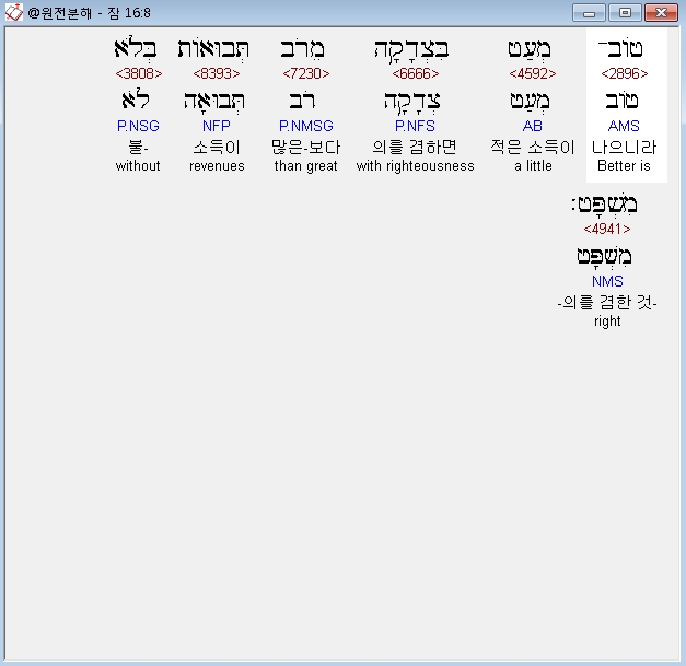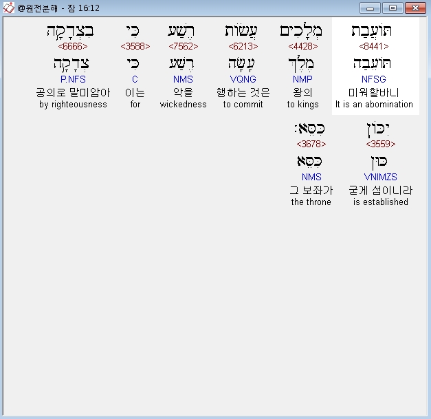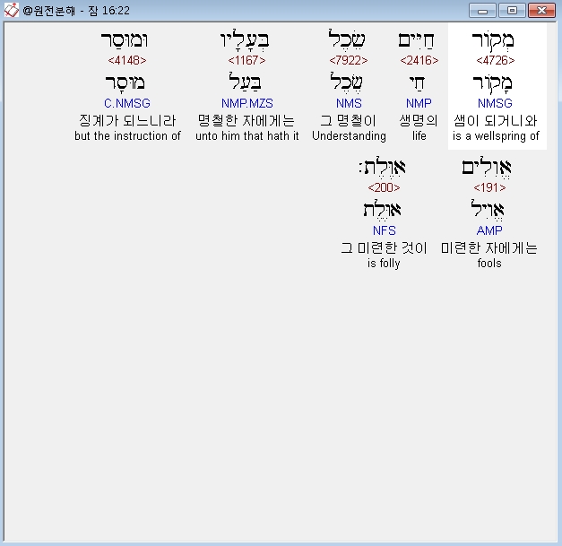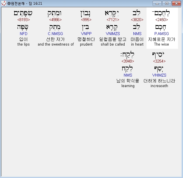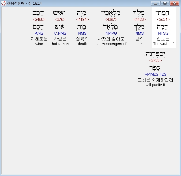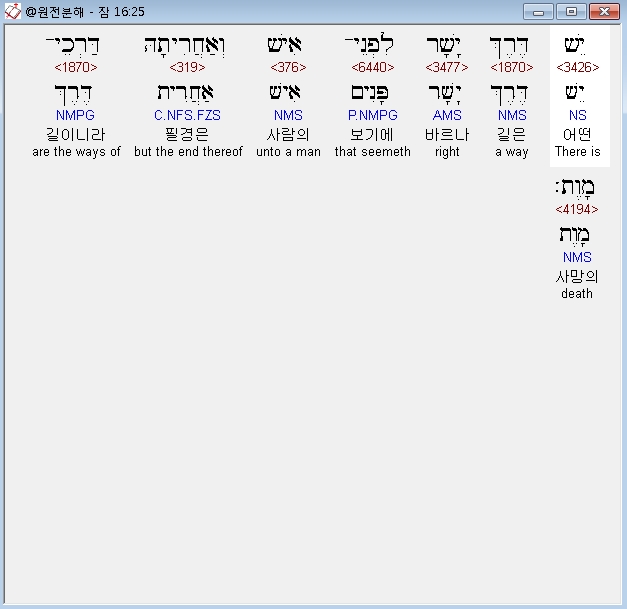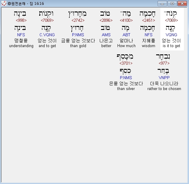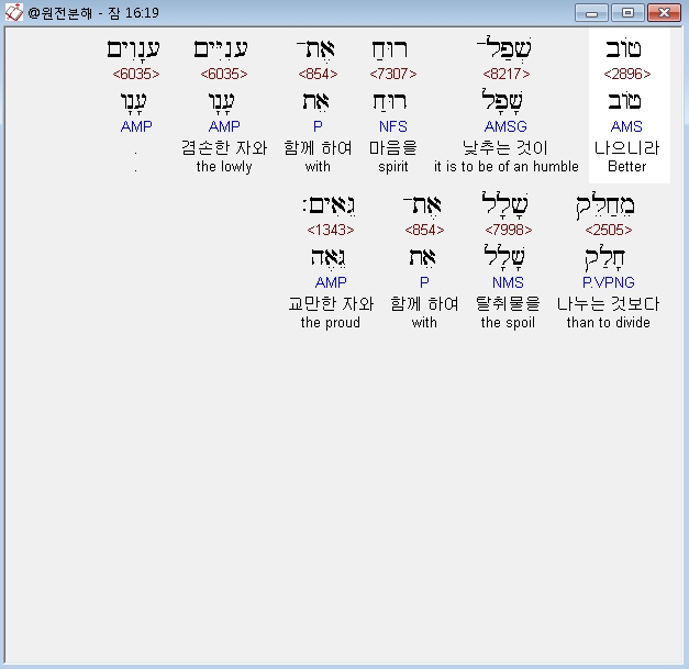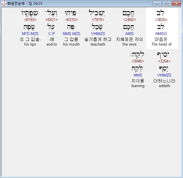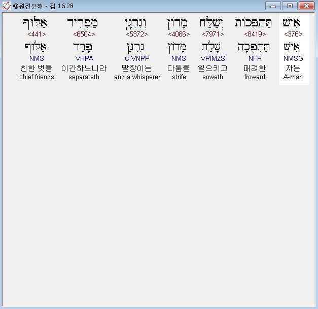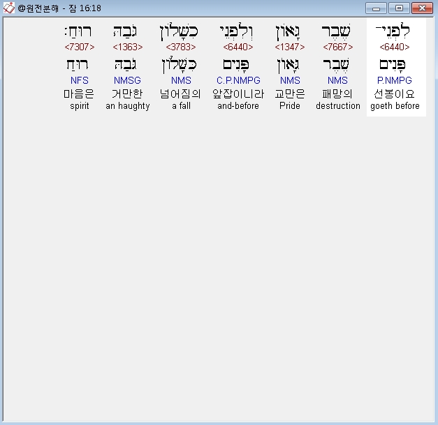 | 히브리어 잠언 18장 전체 원어 원문 성경 공부 주석 강해 설교 해설 해석 (0) | 2020.10.15 |