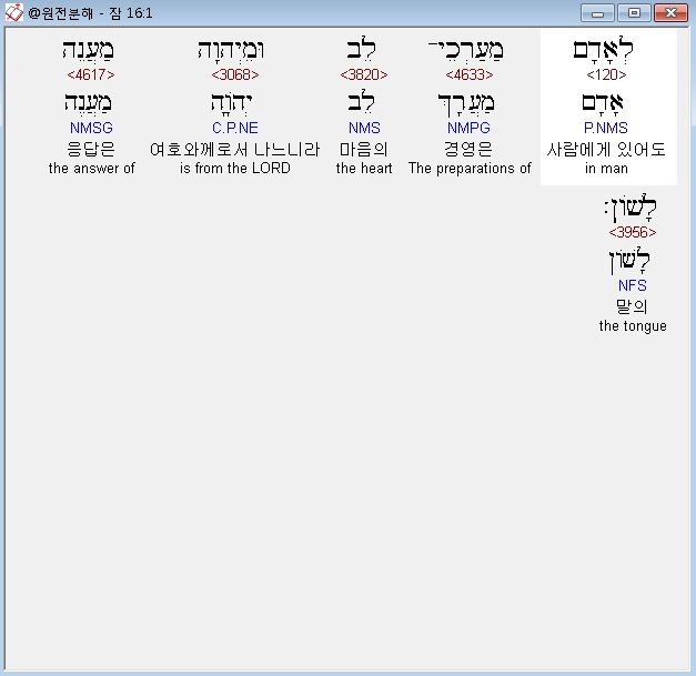 히브리어구약BHS,1 לְאָדָם מַעַרְכֵי־לֵב וּמֵיְהוָה מַעֲנֵה לָשֹׁון׃