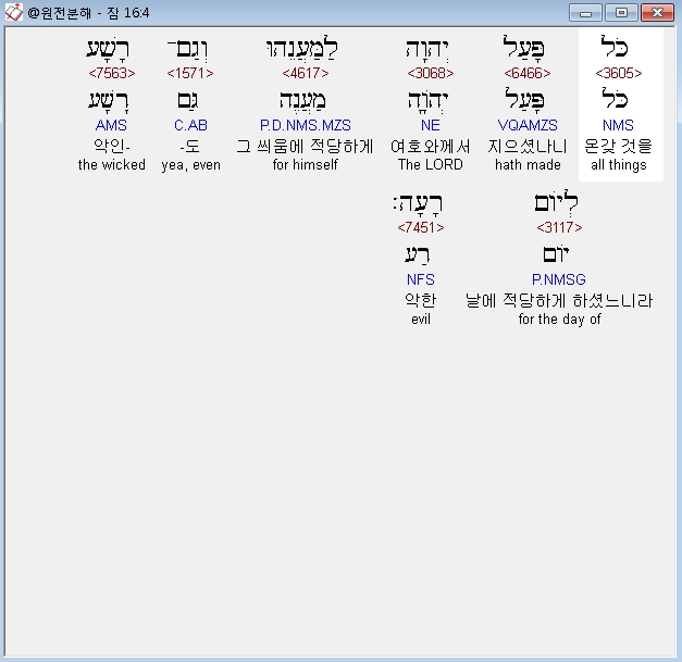 히브리어구약BHS,4 כֹּל* פָּעַל יְהוָה לַמַּעֲנֵהוּ וְגַם־רָשָׁע לְיֹום רָעָה׃
