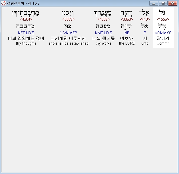 히브리어구약BHS,3 גֹּל אֶל־יְהוָה מַעֲשֶׂיךָ וְיִכֹּנוּ מַחְשְׁבֹתֶיךָ׃