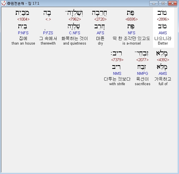 히브리어구약BHS,1 טֹוב פַּת חֲרֵבָה וְשַׁלְוָה־בָהּ מִבַּיִת מָלֵא זִבְחֵי־רִיב׃