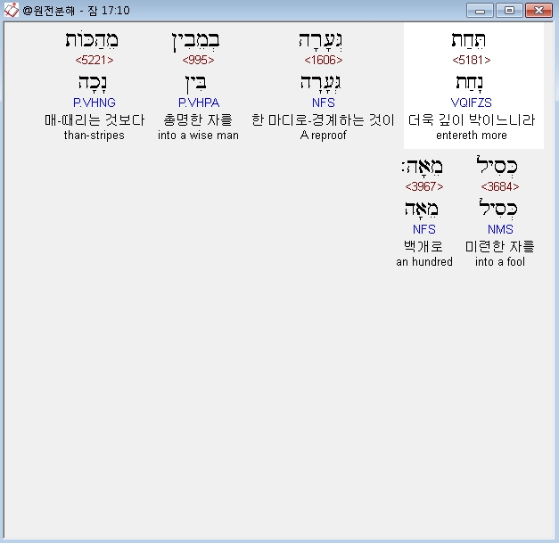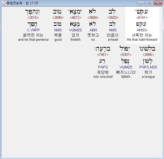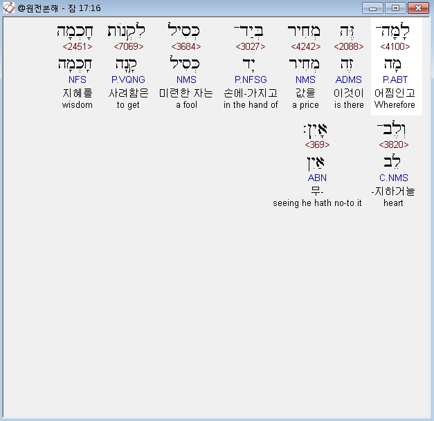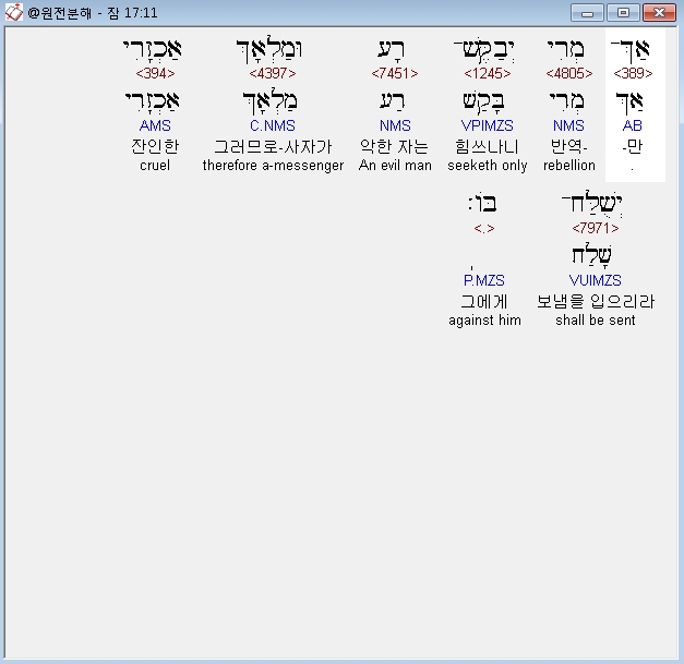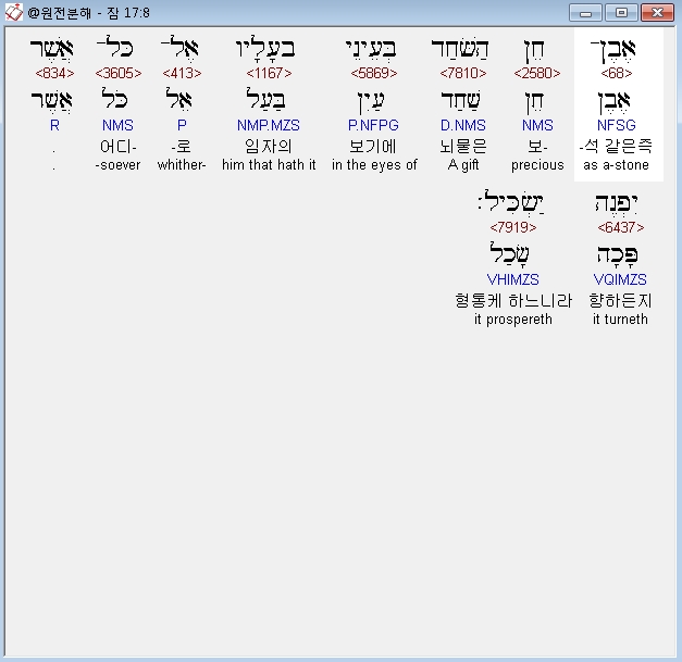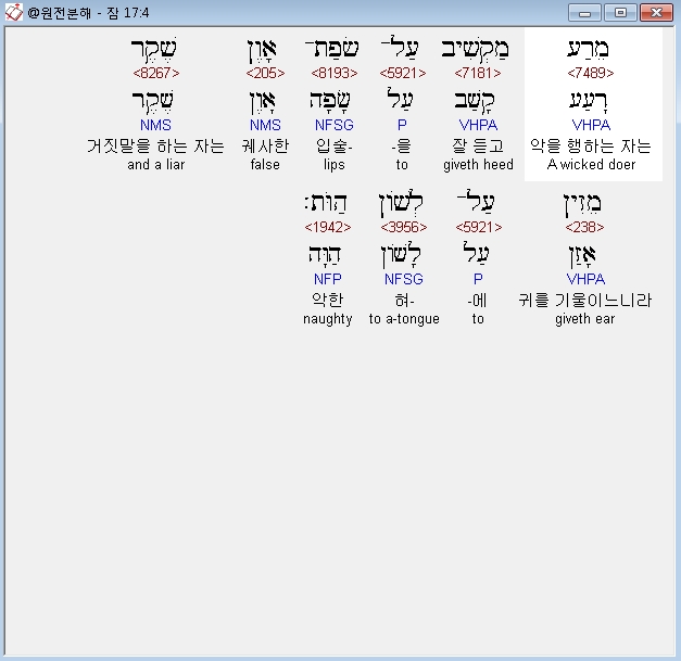 | 히브리어 잠언 19장 전체 원어 원문 성경 공부 주석 강해 설교 해설 해석 (0) | 2020.10.15 |