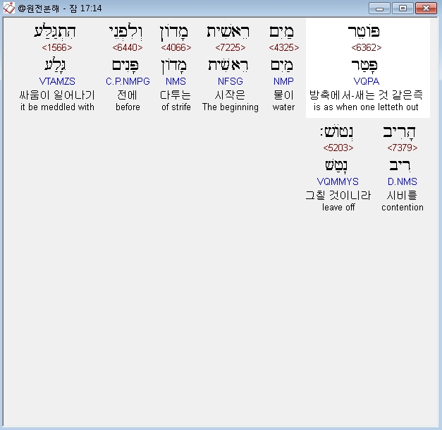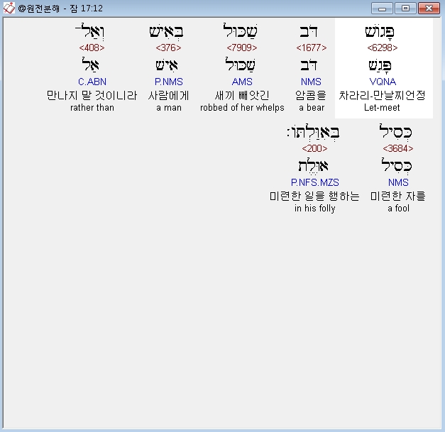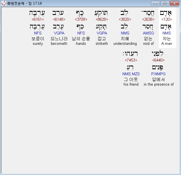 | 히브리어 잠언 18장 전체 원어 원문 성경 공부 주석 강해 설교 해설 해석 (0) | 2020.10.15 |