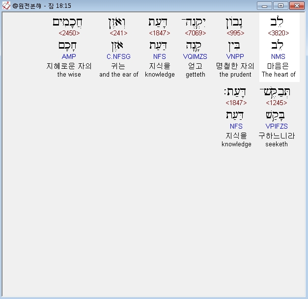 | 히브리어 잠언 15장 전체 원어 원문 성경 공부 주석 강해 설교 해설 해석 (0) | 2020.10.15 |