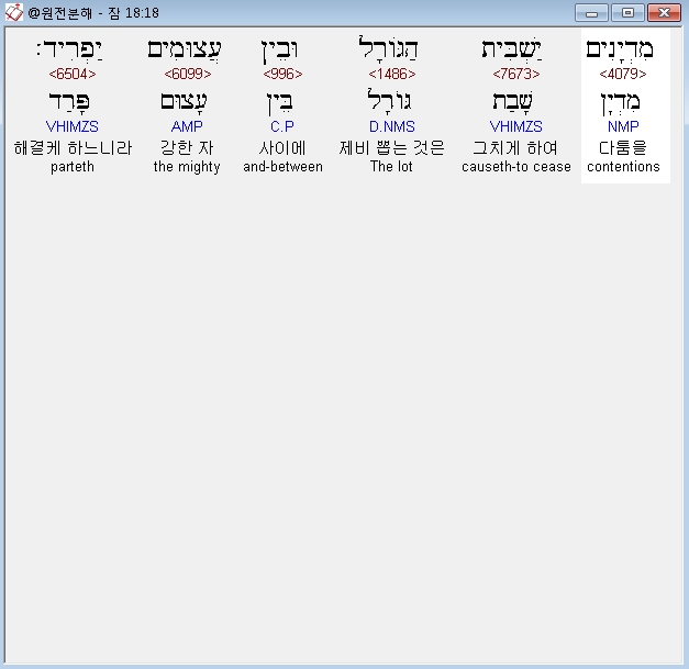 히브리어구약BHS,18 מִדְיָנִים יַשְׁבִּית הַגֹּורָל וּבֵין עֲצוּמִים יַפְרִיד׃