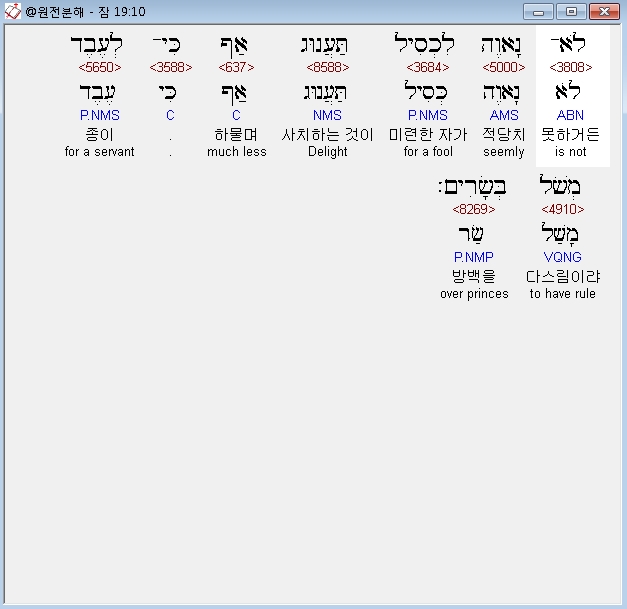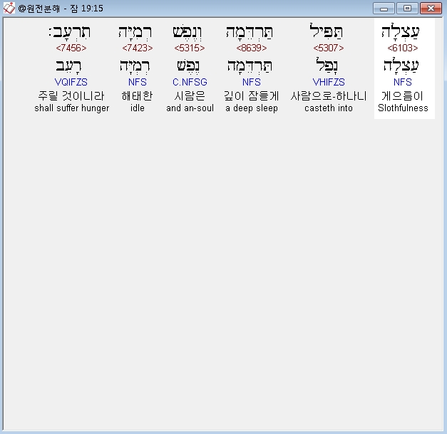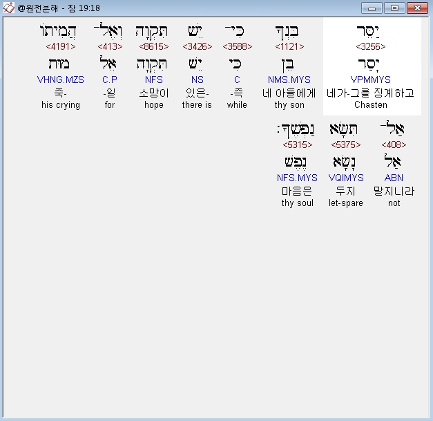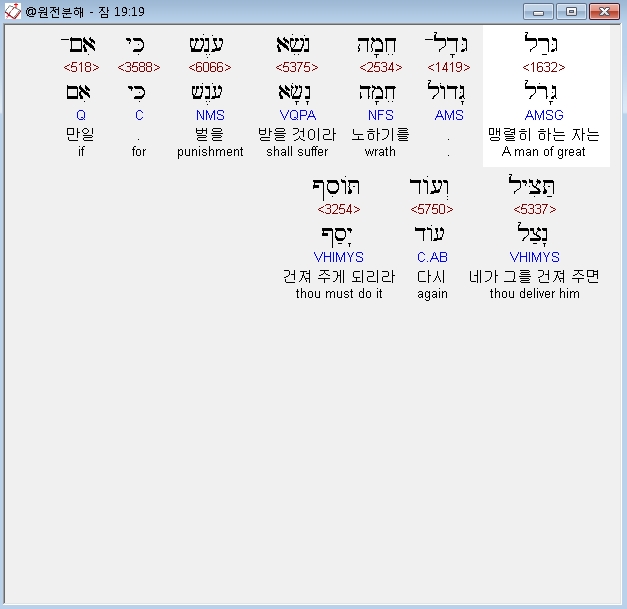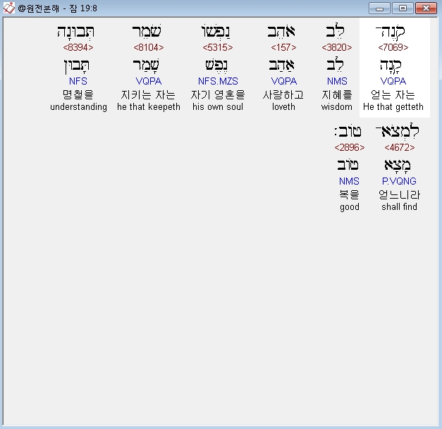 | 히브리어 잠언 18장 전체 원어 원문 성경 공부 주석 강해 설교 해설 해석 (0) | 2020.10.15 |