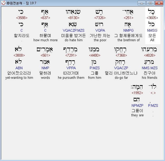 히브리어구약BHS,7 כָּל אֲחֵי־רָשׁ שְׂנֵאֻהוּ אַף כִּי מְרֵעֵהוּ רָחֲקוּ מִמֶּנּוּ מְרַדֵּף אֲמָרִים [כ= לֹא] [ק= לֹו]־הֵמָּה׃