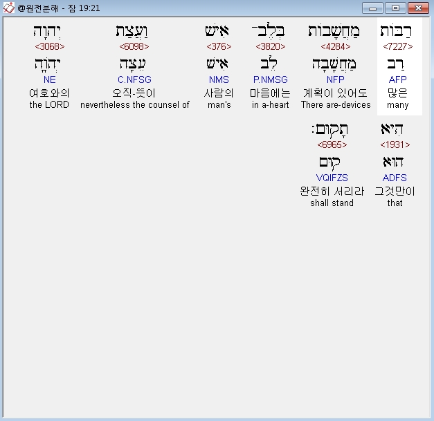 | 히브리어 잠언 21장 전체 원어 원문 성경 공부 주석 강해 설교 해설 해석 (0) | 2020.10.15 |