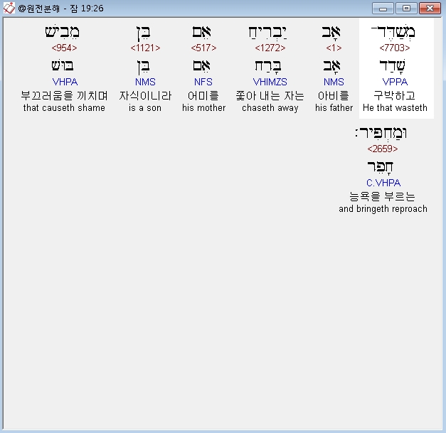 히브리어구약BHS,26 מְשַׁדֶּד־אָב יַבְרִיחַ אֵם בֵּן מֵבִישׁ וּמַחְפִּיר׃