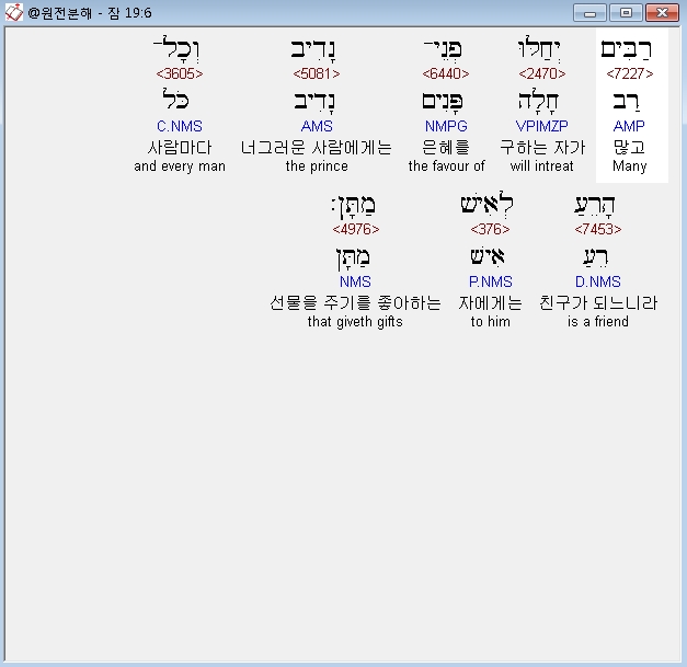 히브리어구약BHS,6 רַבִּים יְחַלּוּ פְנֵי־נָדִיב וְכָל־הָרֵעַ לְאִישׁ מַתָּן׃