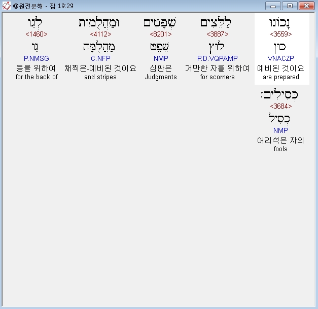 히브리어구약BHS,29 נָכֹונוּ לַלֵּצִים שְׁפָטִים וּמַהֲלֻמֹות לְגֵו כְּסִילִים׃
