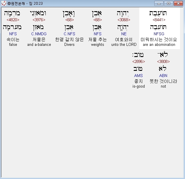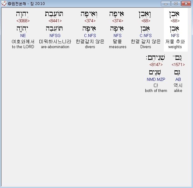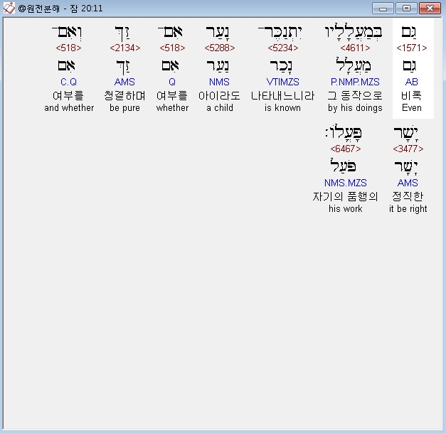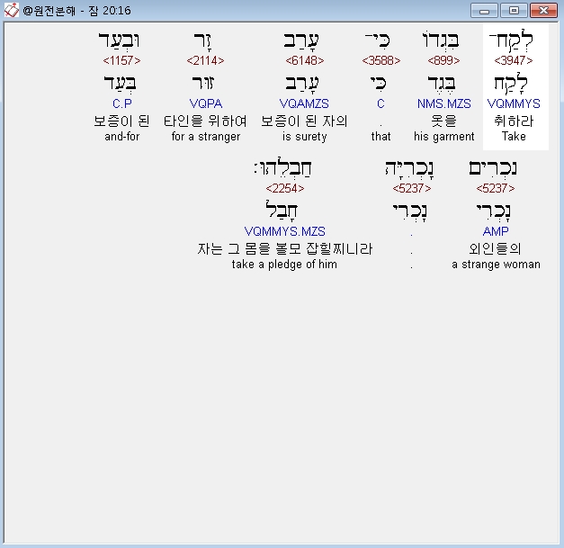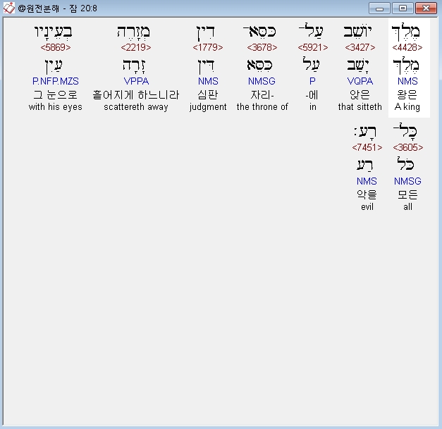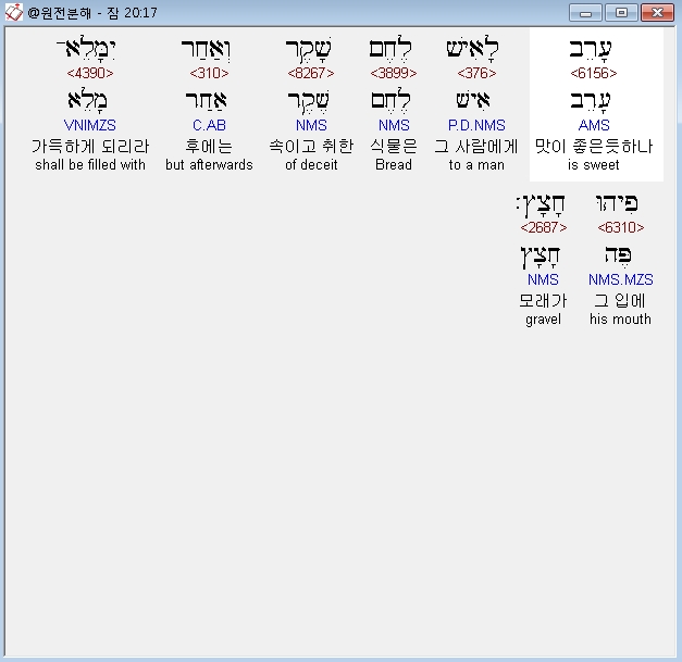 | 히브리어 잠언 18장 전체 원어 원문 성경 공부 주석 강해 설교 해설 해석 (0) | 2020.10.15 |