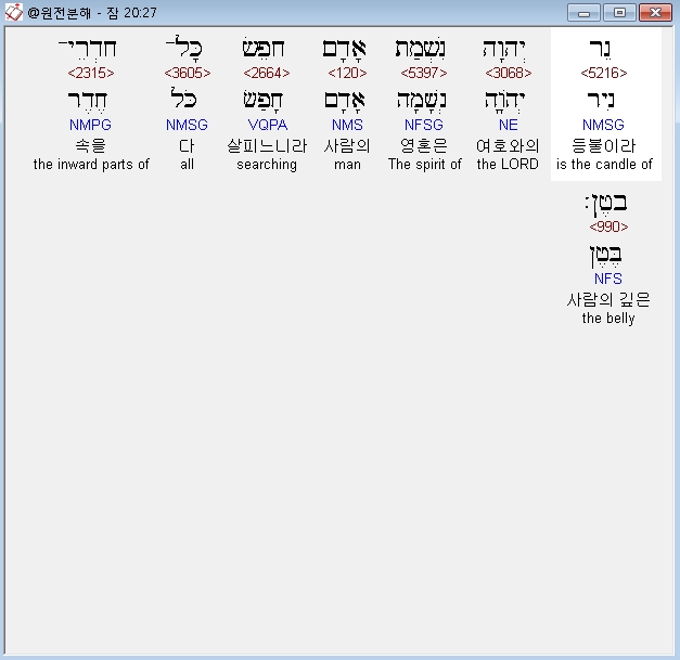 히브리어구약BHS,27 נֵר יְהוָה נִשְׁמַת אָדָם חֹפֵשׂ כָּל־חַדְרֵי־בָטֶן׃