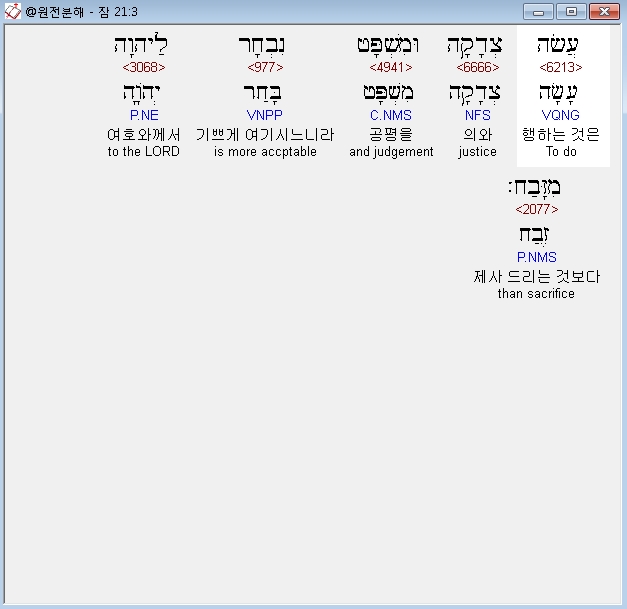 히브리어구약BHS,3 עֲשֹׂה צְדָקָה וּמִשְׁפָּט נִבְחָר לַיהוָה מִזָּבַח׃