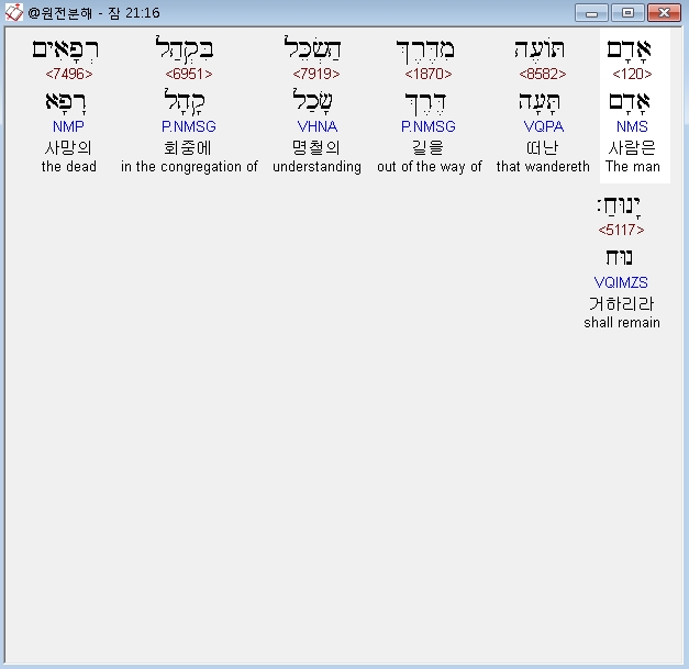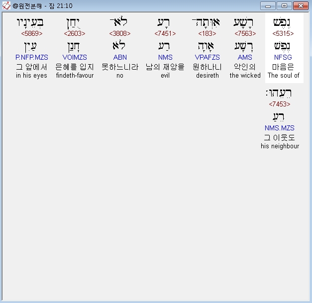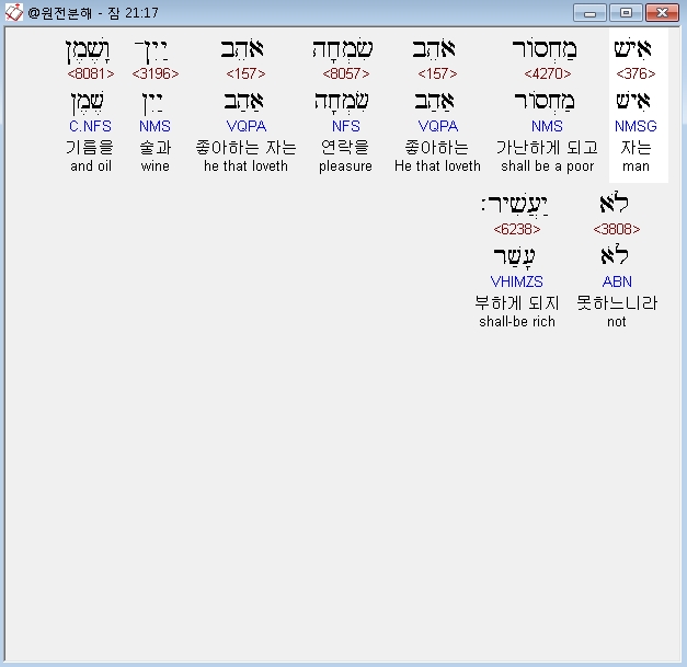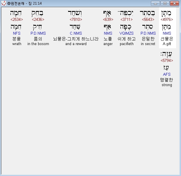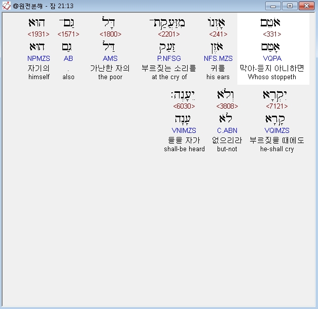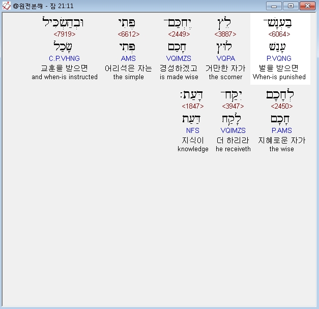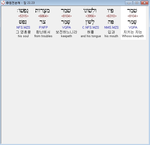 | 히브리어 잠언 18장 전체 원어 원문 성경 공부 주석 강해 설교 해설 해석 (0) | 2020.10.15 |