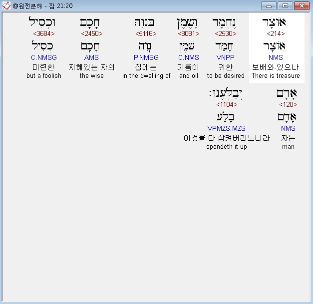 | 히브리어 잠언 20장 전체 원어 원문 성경 공부 주석 강해 설교 해설 해석 (0) | 2020.10.15 |