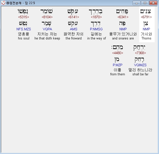 히브리어구약BHS,5 צִנִּים פַּחִים בְּדֶרֶךְ עִקֵּשׁ שֹׁומֵר נַפְשֹׁו יִרְחַק מֵהֶם׃