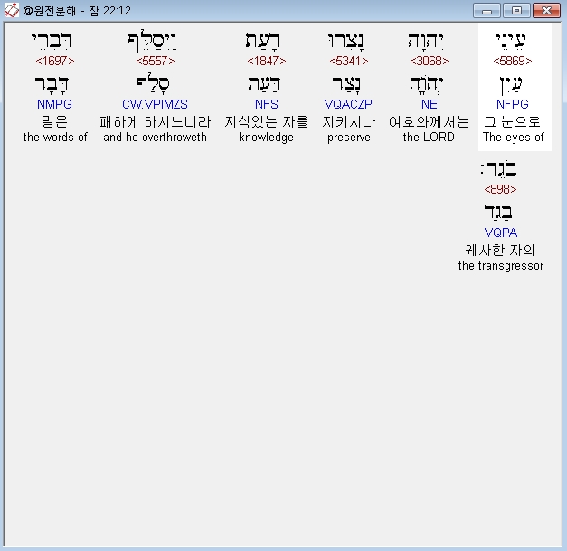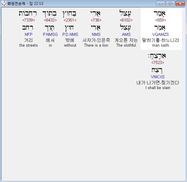 | 히브리어 잠언 21장 전체 원어 원문 성경 공부 주석 강해 설교 해설 해석 (0) | 2020.10.15 |