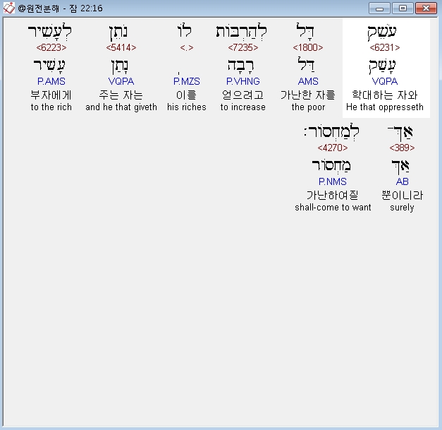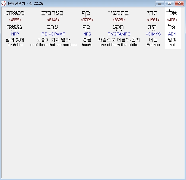 | 히브리어 잠언 23장 전체 원어 원문 성경 공부 주석 강해 설교 해설 해석 (0) | 2020.10.15 |