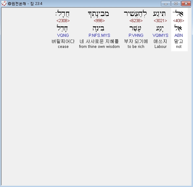 히브리어구약BHS,4 אַל־תִּיגַע לְהַעֲשִׁיר מִבִּינָתְךָ חֲדָל׃