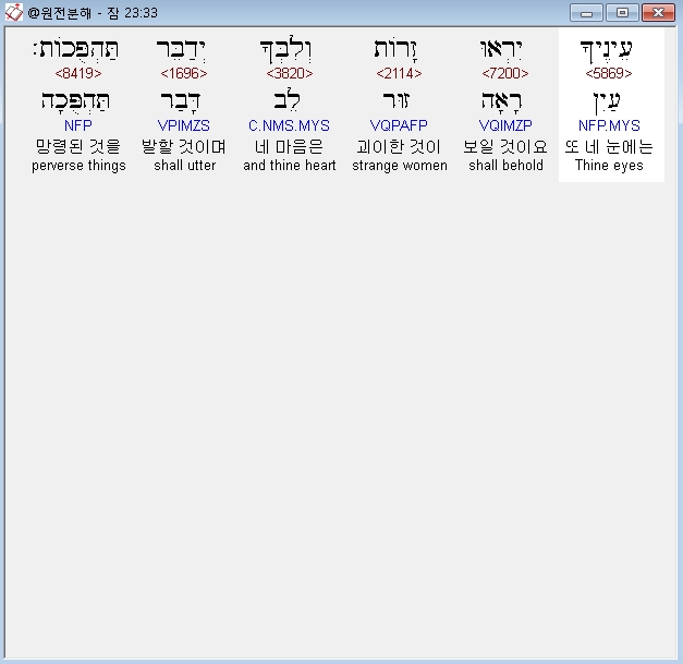 히브리어구약BHS,33 עֵינֶיךָ יִרְאוּ זָרֹות וְלִבְּךָ יְדַבֵּר תַּהְפֻּכֹות׃