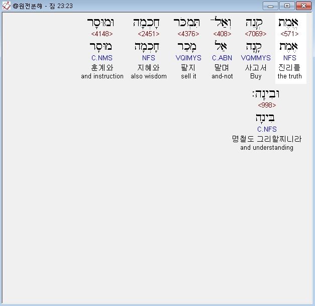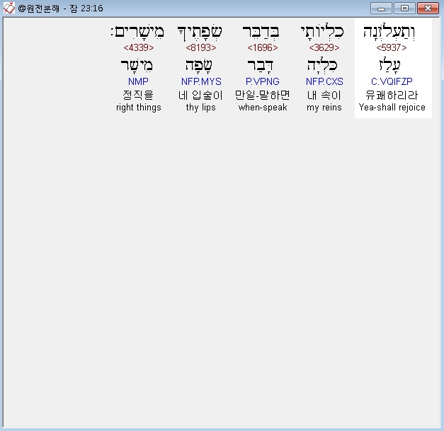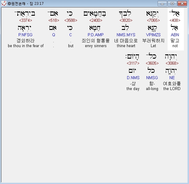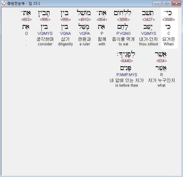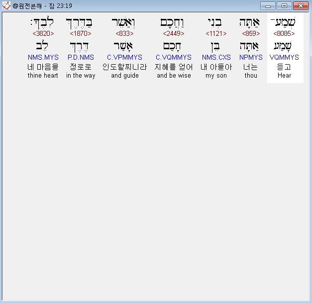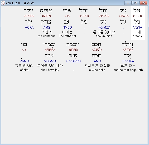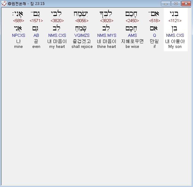 | 히브리어 잠언 24장 전체 원어 원문 성경 공부 주석 강해 설교 해설 해석 (0) | 2020.10.15 |
