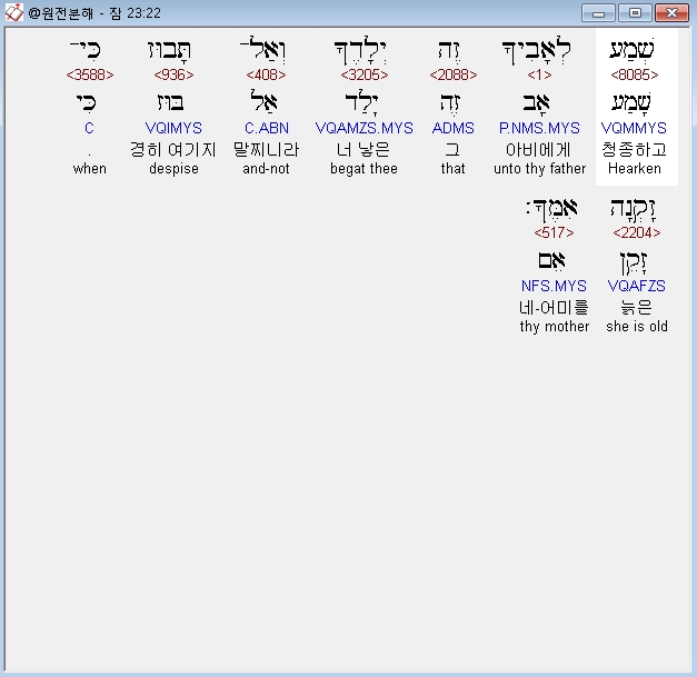 | 히브리어 잠언 22장 전체 원어 원문 성경 공부 주석 강해 설교 해설 해석 (0) | 2020.10.15 |