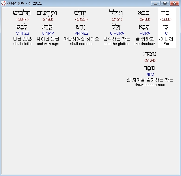 | 히브리어 잠언 21장 전체 원어 원문 성경 공부 주석 강해 설교 해설 해석 (0) | 2020.10.15 |