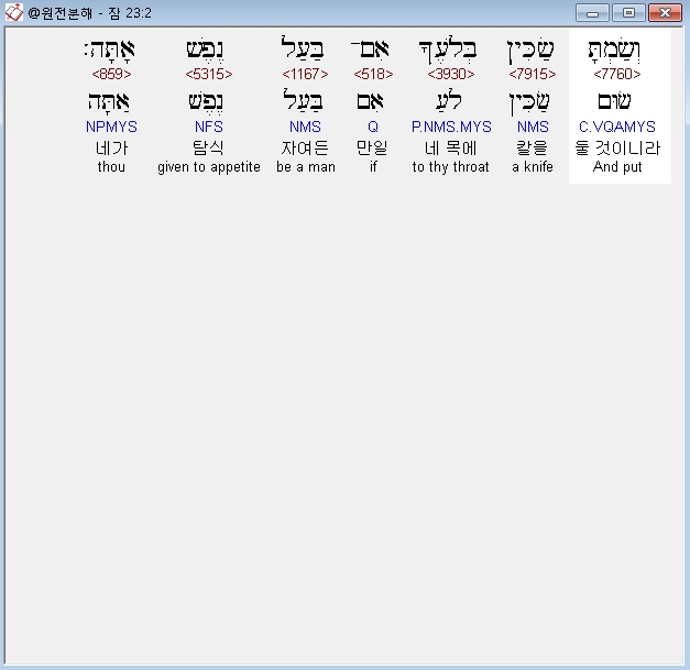 히브리어구약BHS,2 וְשַׂמְתָּ שַׂכִּין בְּלֹעֶךָ אִם־בַּעַל נֶפֶשׁ אָתָּה׃