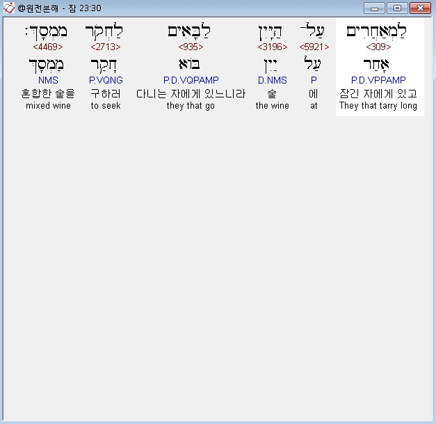히브리어구약BHS,30 לַמְאַחֲרִים עַל־הַיָּיִן לַבָּאִים לַחְקֹר מִמְסָךְ׃