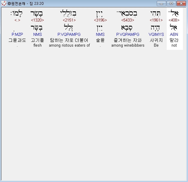 | 히브리어 잠언 20장 전체 원어 원문 성경 공부 주석 강해 설교 해설 해석 (0) | 2020.10.15 |