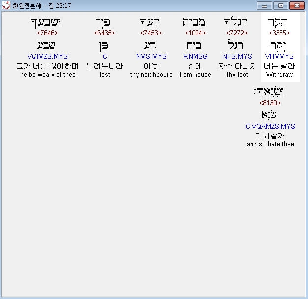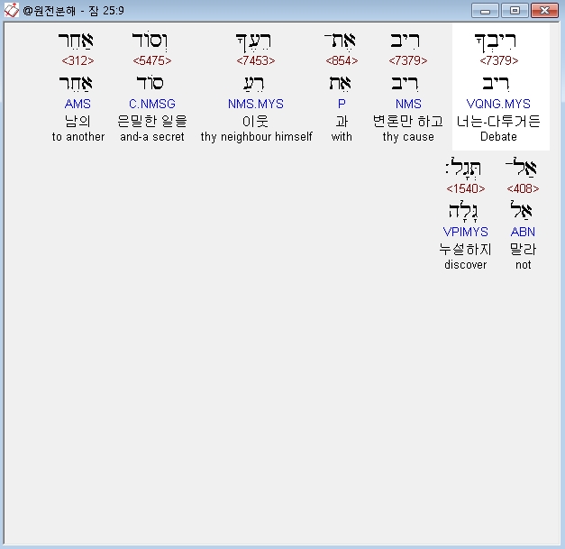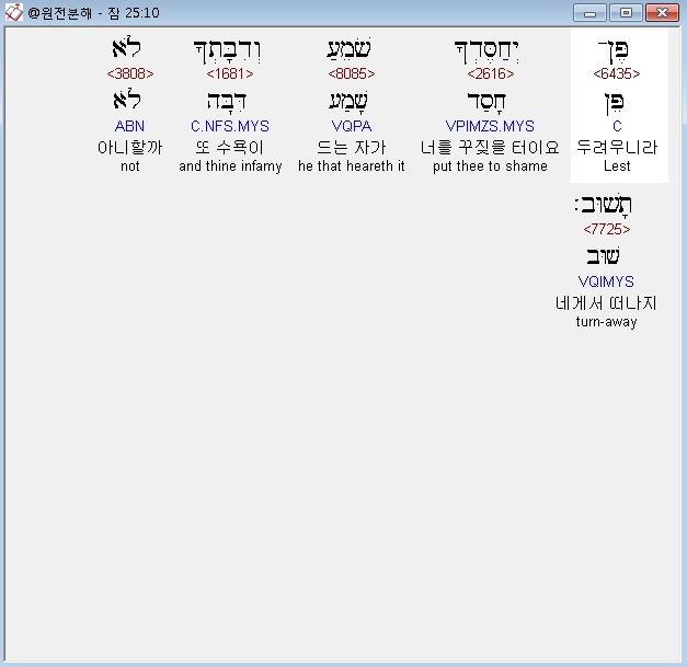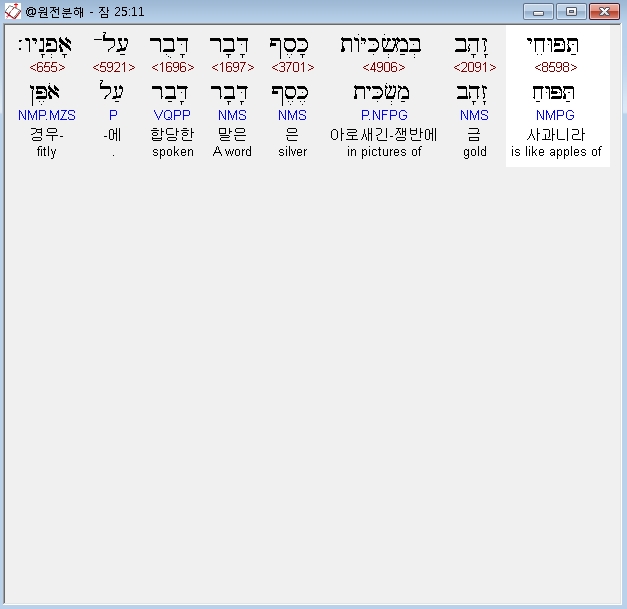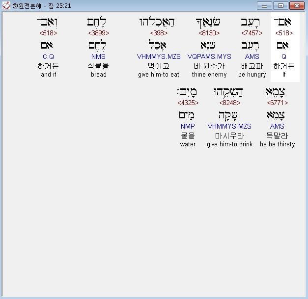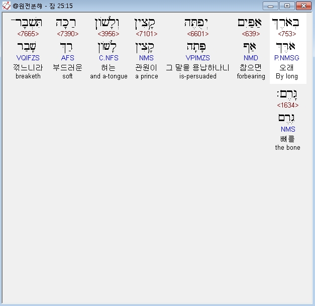 | 히브리어 잠언 22장 전체 원어 원문 성경 공부 주석 강해 설교 해설 해석 (0) | 2020.10.15 |