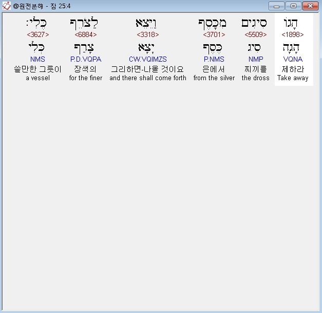 히브리어구약BHS,4 הָגֹו סִיגִים מִכָּסֶף וַיֵּצֵא לַצֹּרֵף כֶּלִי׃