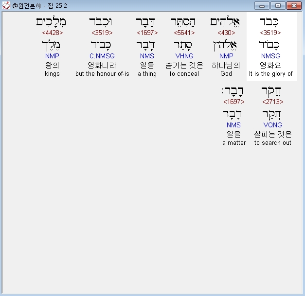 히브리어구약BHS,2 כְּבֹד אֱלֹהִים הַסְתֵּר דָּבָר וּכְבֹד מְלָכִים חֲקֹר דָּבָר׃