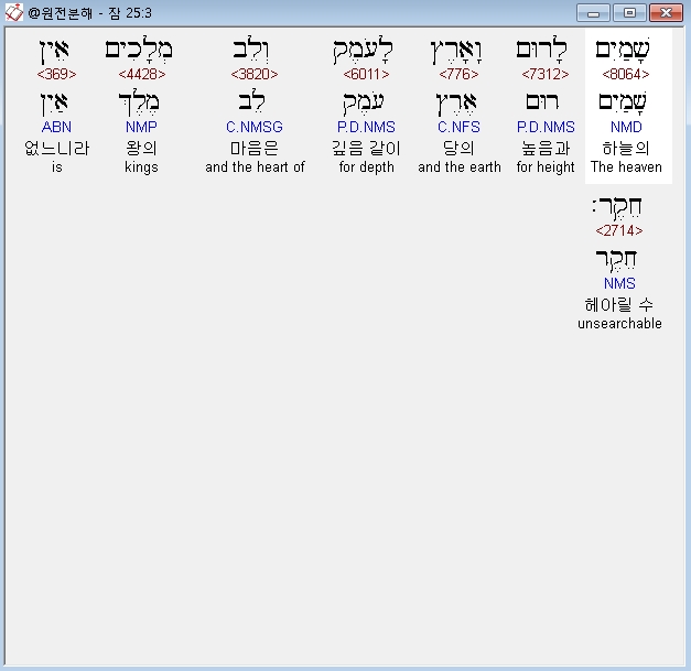 영어NASB,3 As the heavens for height and the earth for depth, So the heart of kings is unsearchable.