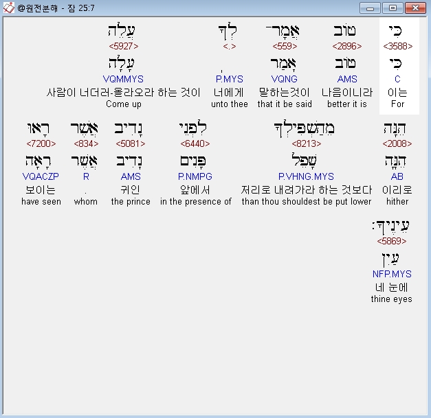 히브리어구약BHS,7 כִּי טֹוב אֲמָר־לְךָ עֲלֵה הֵנָּה מֵהַשְׁפִּילְךָ לִפְנֵי נָדִיב אֲשֶׁר רָאוּ עֵינֶיךָ׃