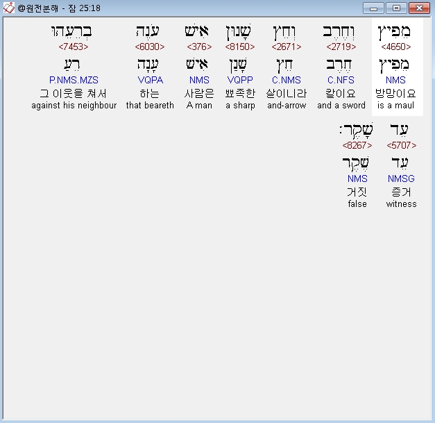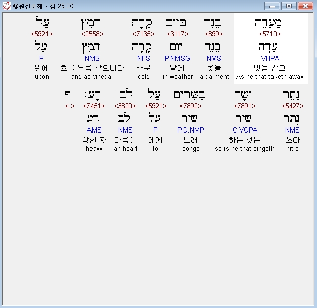 | 히브리어 잠언 26장 전체 원어 원문 성경 공부 주석 강해 설교 해설 해석 (0) | 2020.10.15 |