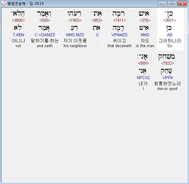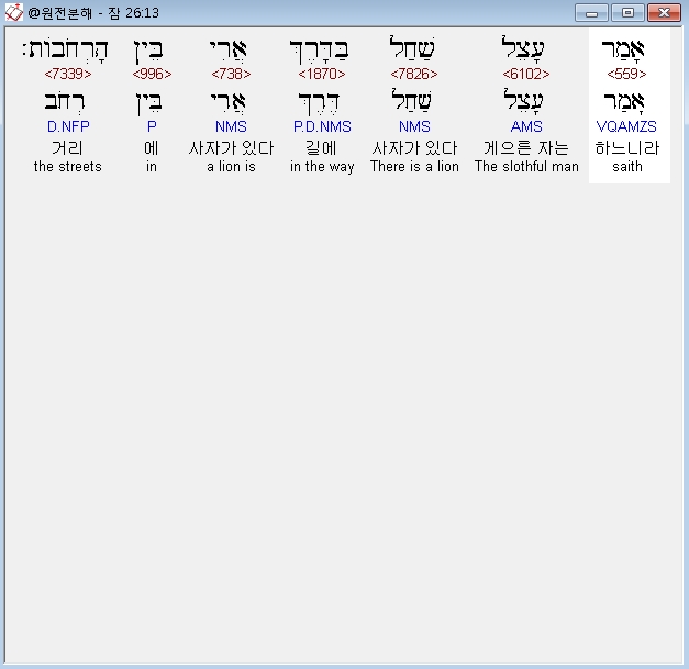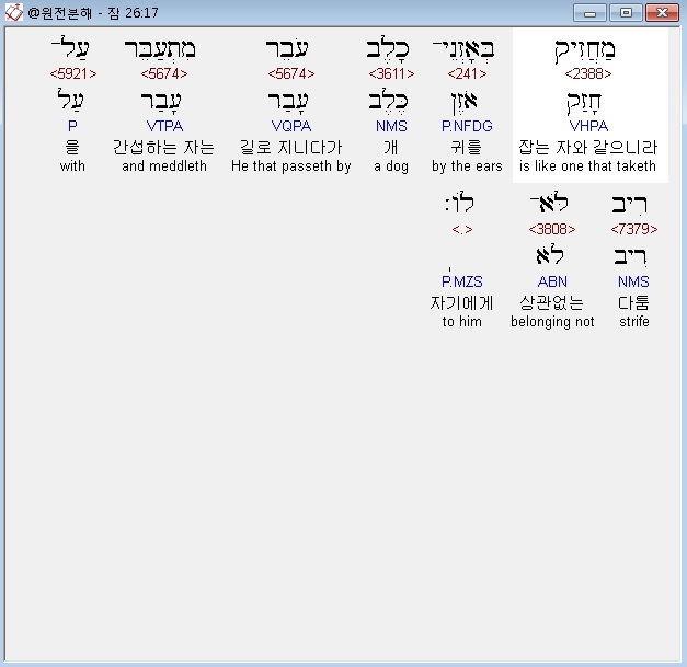 | 히브리어 잠언 23장 전체 원어 원문 성경 공부 주석 강해 설교 해설 해석 (0) | 2020.10.15 |