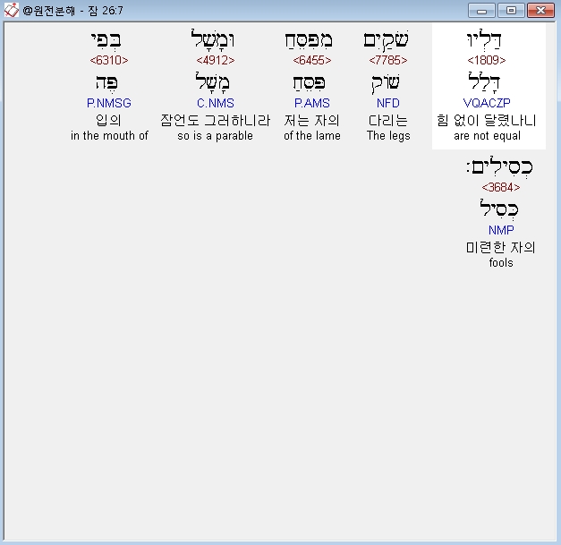히브리어구약BHS,7 דַּלְיוּ שֹׁקַיִמ* מִפִּסֵּחַ וּמָשָׁל בְּפִי כְסִילִים׃