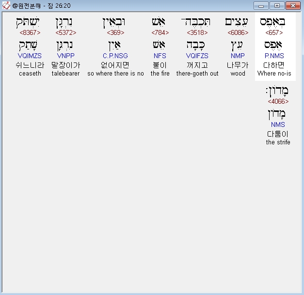 | 히브리어 잠언 25장 전체 원어 원문 성경 공부 주석 강해 설교 해설 해석 (0) | 2020.10.15 |