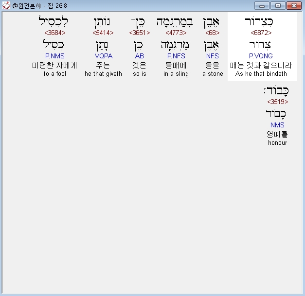 우리말성경,8 어리석은 사람에게 영광을 돌리는 것은 물매에 돌을 매는 것과 같다.
