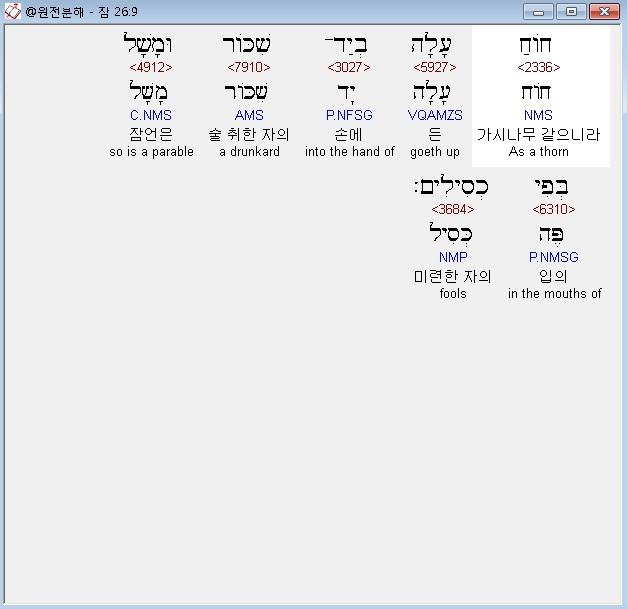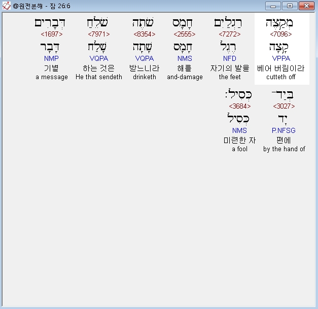 히브리어구약BHS,6 מְקַצֶּה רַגְלַיִם חָמָס שֹׁתֶה שֹׁלֵחַ דְּבָרִים בְּיַד־כְּסִיל׃