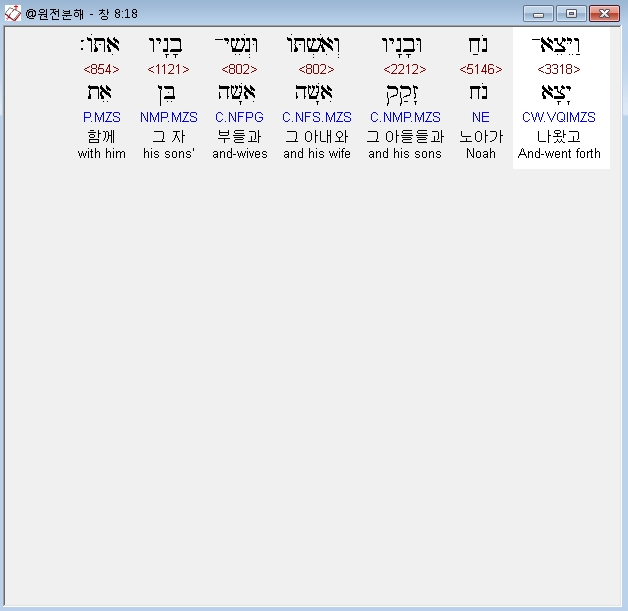 히브리어구약BHS,18 וַיֵּצֵא־נֹחַ וּבָנָיו וְאִשְׁתֹּו וּנְשֵׁי־בָנָיו אִתֹּו׃