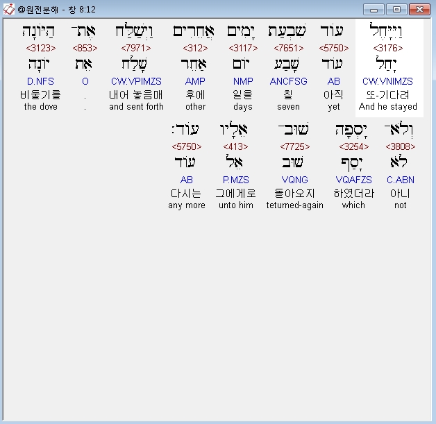 | 히브리어 창세기 7장 전체 원어 원문 성경 공부 주석 강해 설교 해설 해석 (0) | 2020.09.25 |