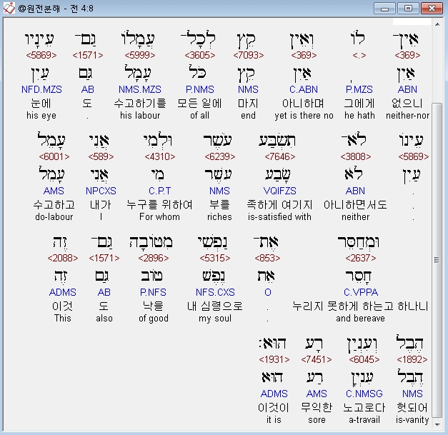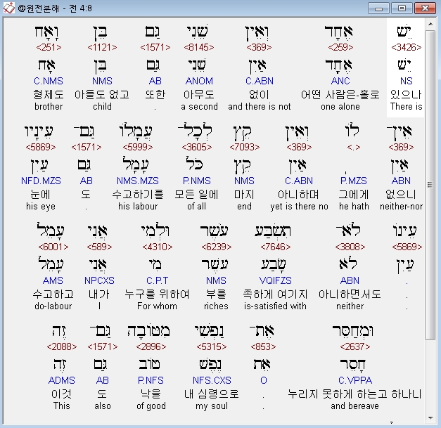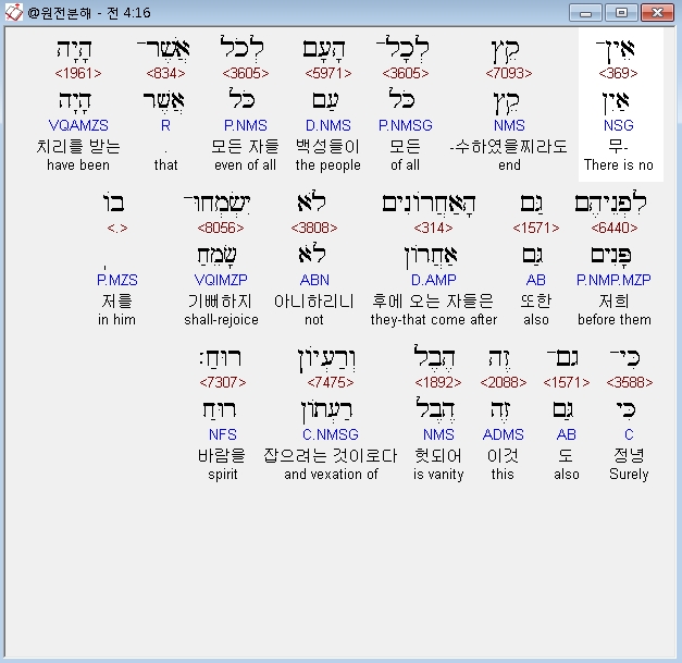 | 히브리어 전도서 5장 전체 원어 원문 성경 공부 주석 강해 설교 해설 해석 (0) | 2020.10.15 |