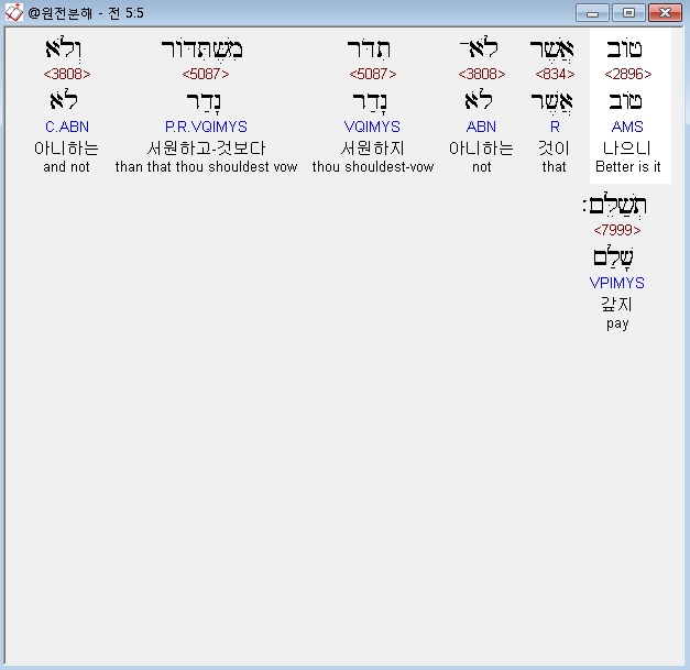 히브리어구약BHS,5 טֹוב אֲשֶׁר לֹא־תִדֹּר מִשֶּׁתִּדֹּור וְלֹא תְשַׁלֵּם׃