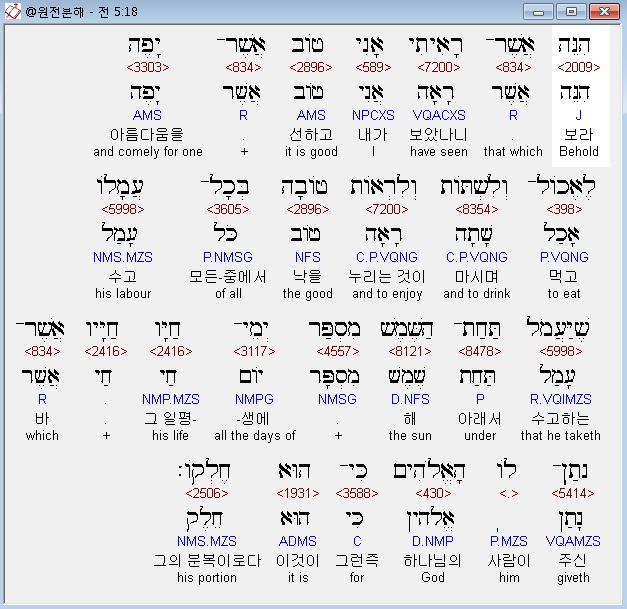 | 히브리어 전도서 3장 전체 원어 원문 성경 공부 주석 강해 설교 해설 해석 (0) | 2020.10.15 |
