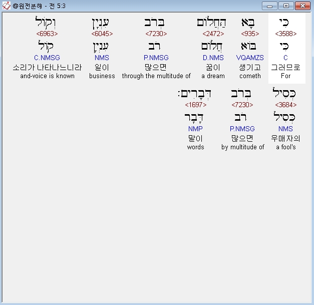 히브리어구약BHS,3 כִּי בָּא הַחֲלֹום בְּרֹב עִנְיָן וְקֹול כְּסִיל בְּרֹב דְּבָרִים׃